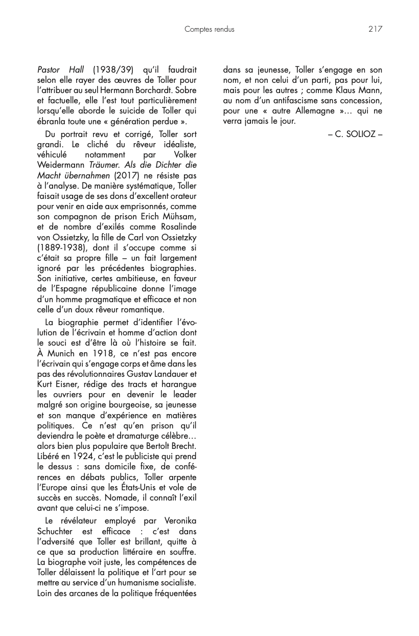Christophe Solioz, Ernst Toller, écrivain révolutionnaire antifasciste © Allemagne d'Aujourd'hui, 2025